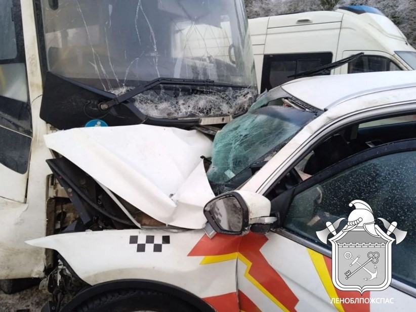 Двух женщин госпитализировали в больницу после лобовой аварии пассажирского автобуса и такси на трассе А-180 Нарва в Ленинградской области, сообщили в пресс-службе Леноблпожспаса 3 марта.