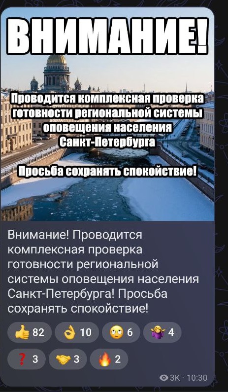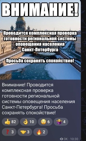 Так, MAX одним из первых оповестил петербуржцев о начале проверки. Соответствующий пост в мессенджере опубликовали в 10:30 по мск с первыми звуками сирен. Жителей попросили сохранять спокойствие.