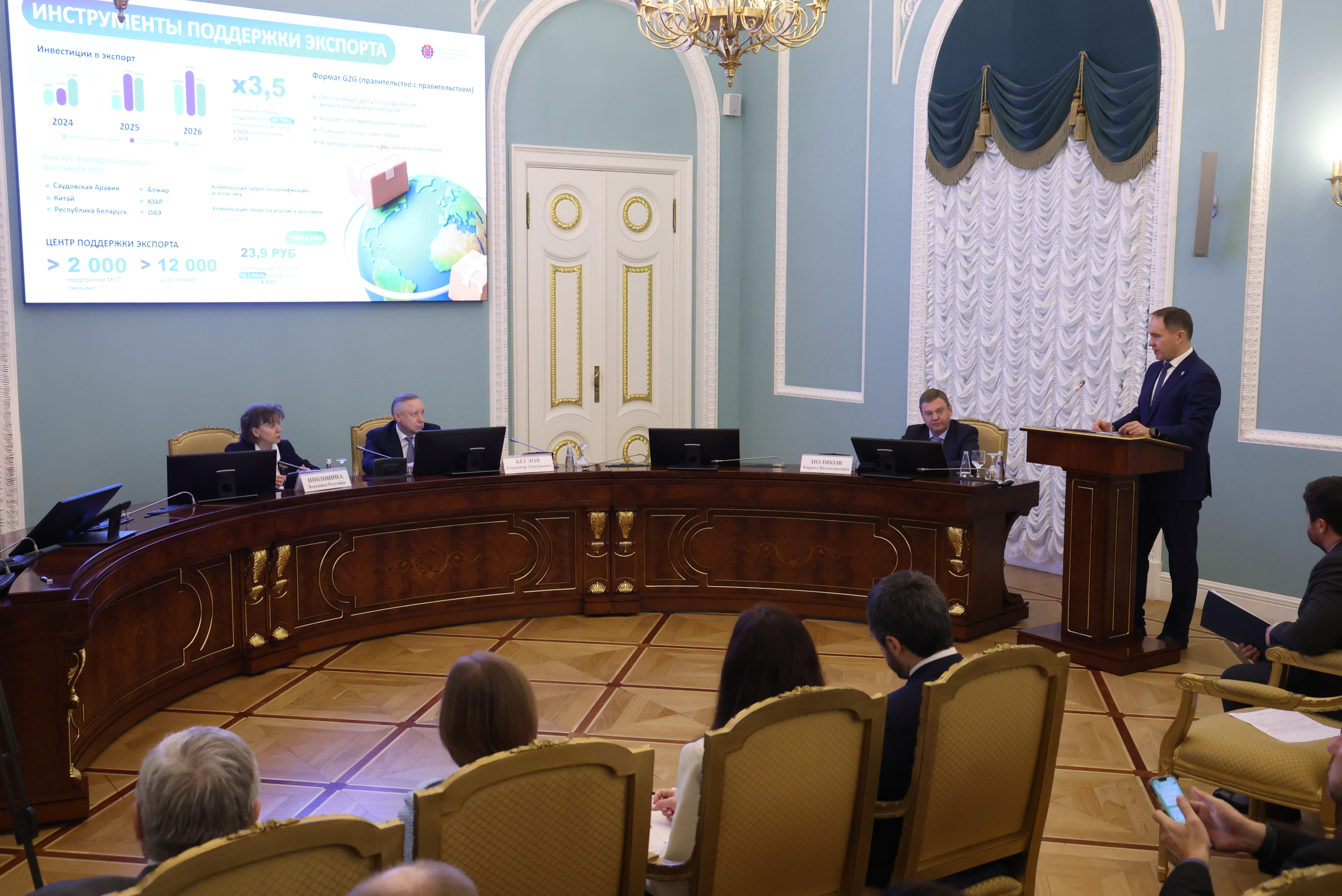 Александр Беглов отметил, что Петербург продолжает расширять перечень мер поддержки экспортёров, создаёт для них новые стимулы, увеличивает финансирование действующих программ, по запросам компаний дополняет перечень субсидируемых затрат.