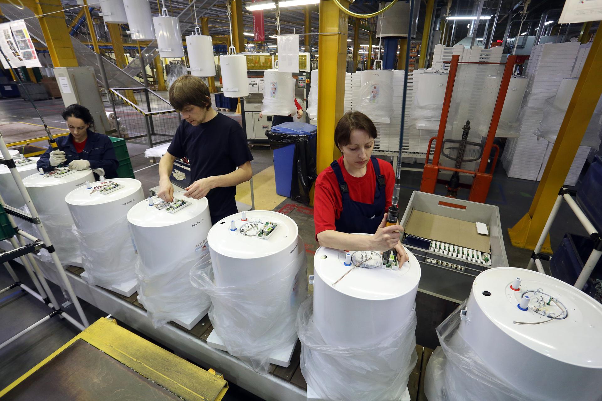 Производство водонагревателей и отопительных котлов на заводе компании Ariston Thermo во Всеволожске.