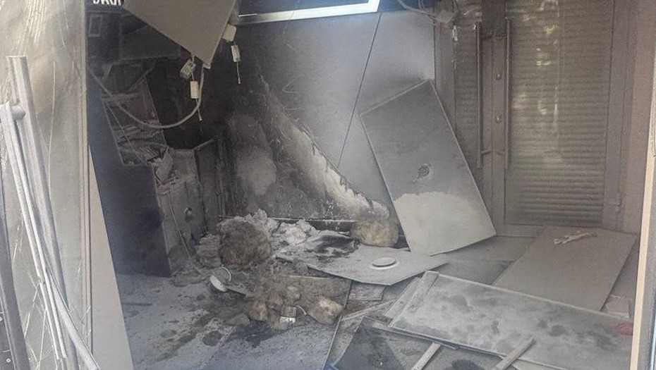 В результате повреждено несколько банкоматов и стёкла банковского отделения.