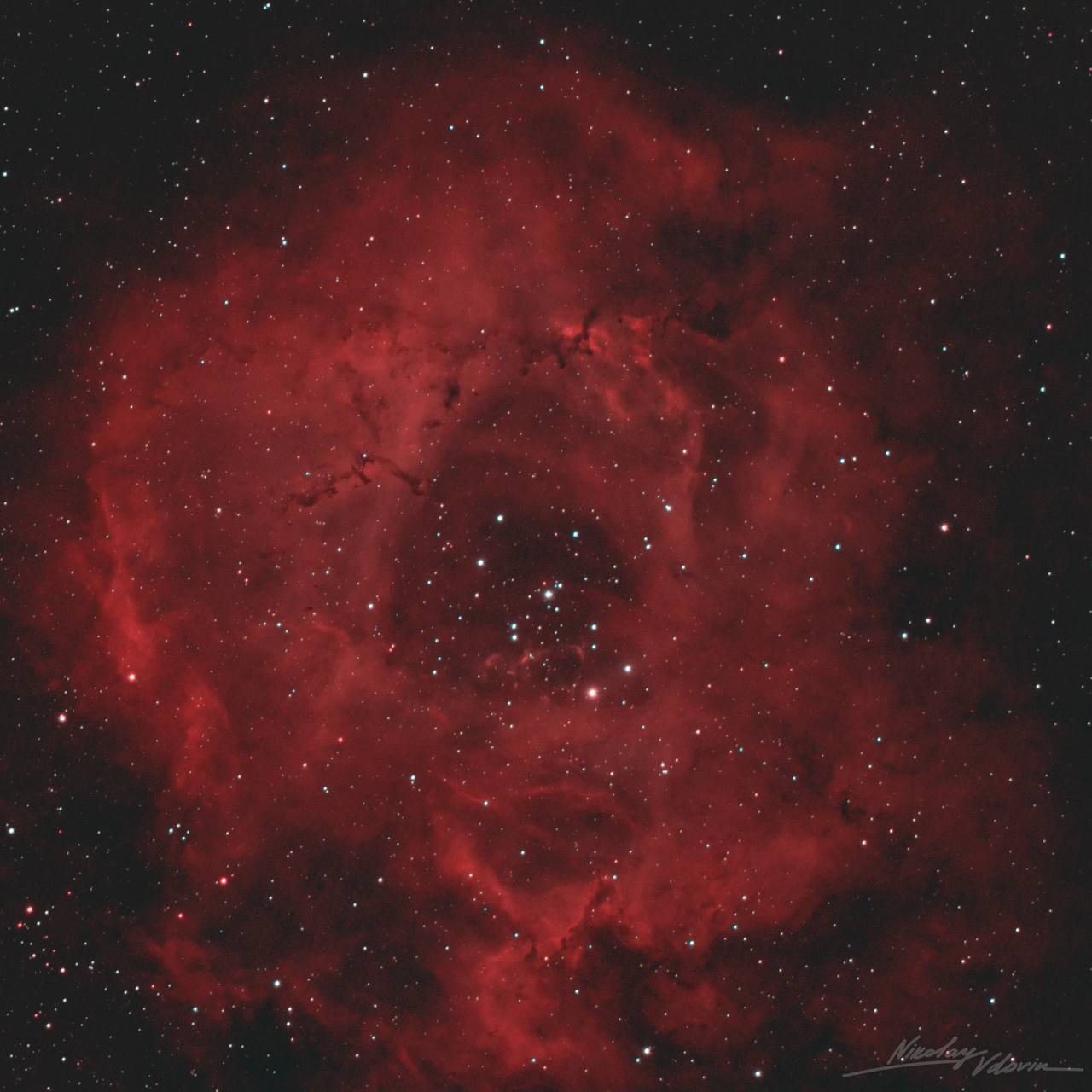 Также в публикации есть фото туманности Розетка — космического цветка диаметром более 100 световых лет, внутри которого происходит процесс формирования новых звёзд.
