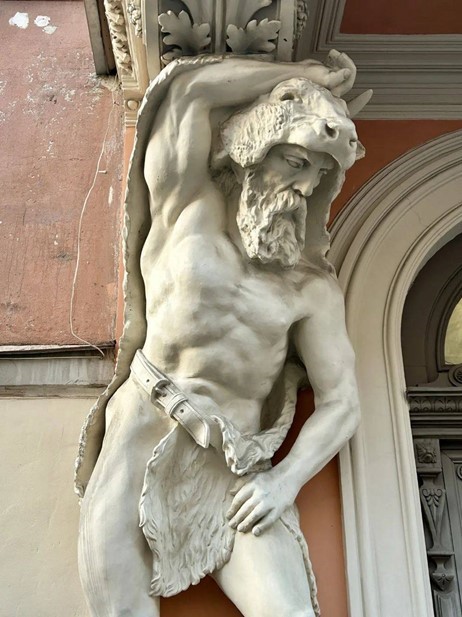 Архитектурно-художественное решение здания характерно богатством и разнообразием элементов: лицевой фасад декорирован скульптурами, в том числе атлантами у парадных входов, кариатидами, поддерживающими эркеры и балконы, маскаронами различной формы.