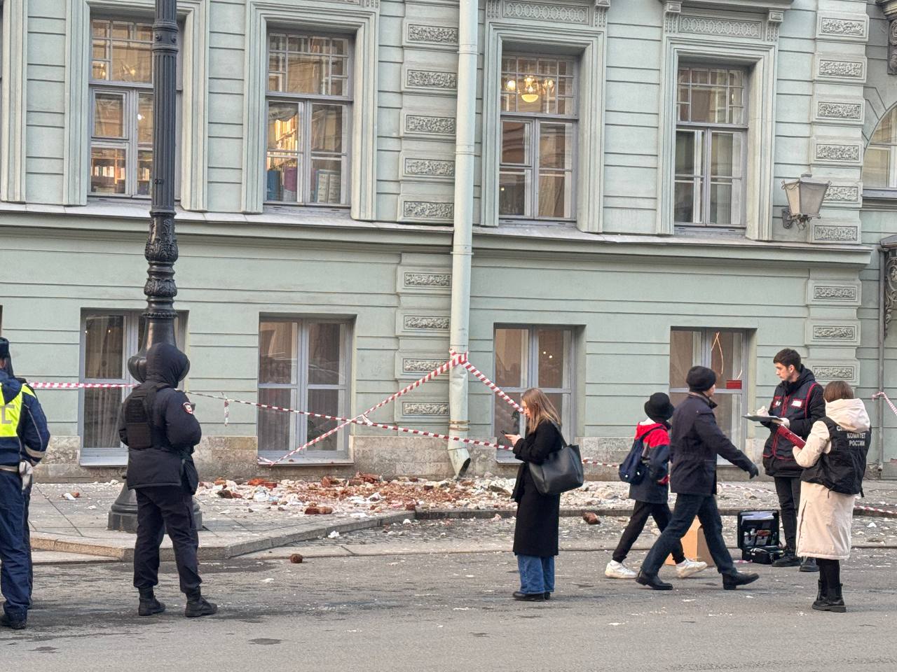 Обрушение части фасада на Большой Морской, 33