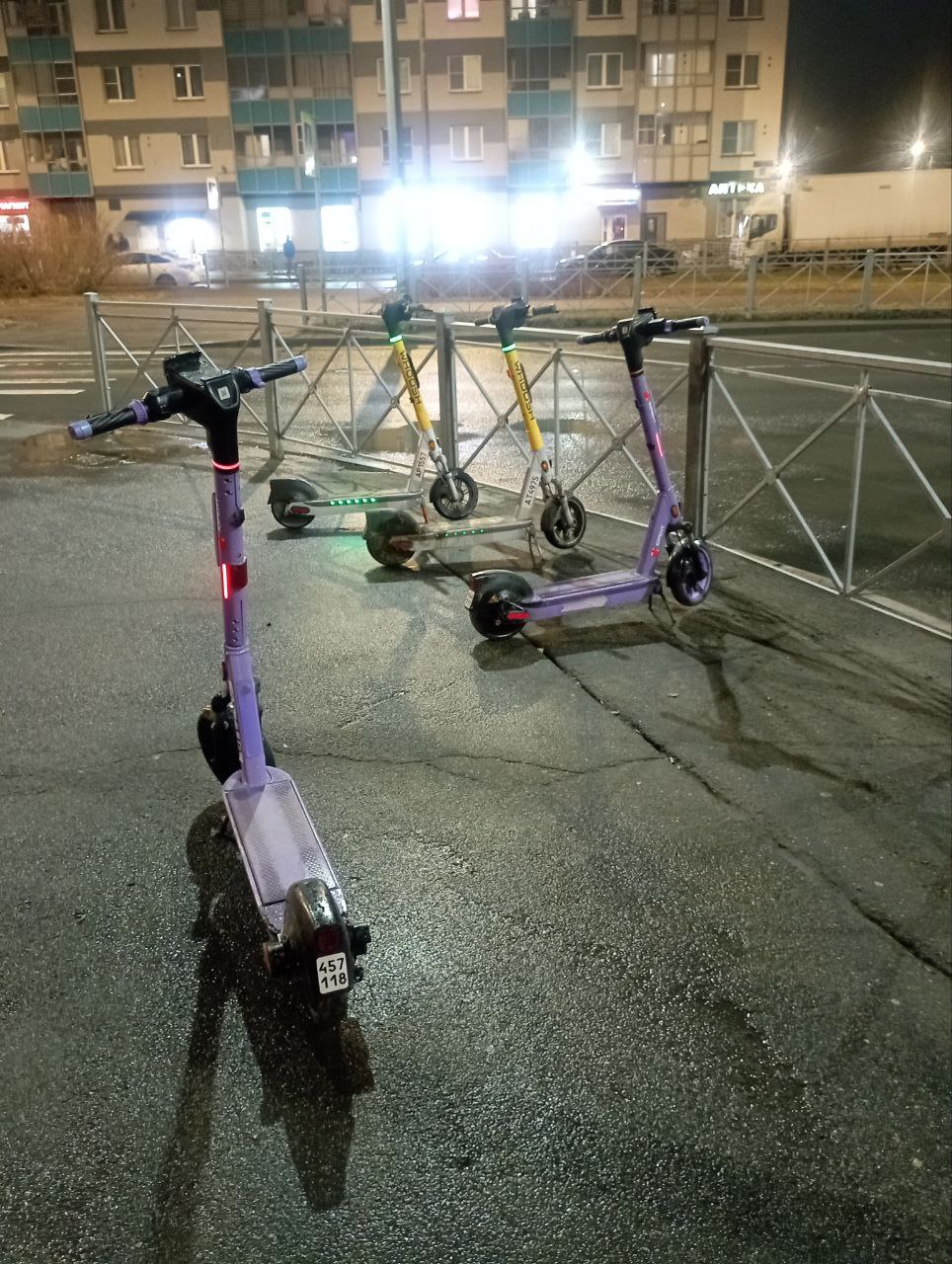 Электросамокаты появились на парковке в ЖК "Новая Охта" (Красногвардейский район Петербурга), сообщает корреспондент "ДП".