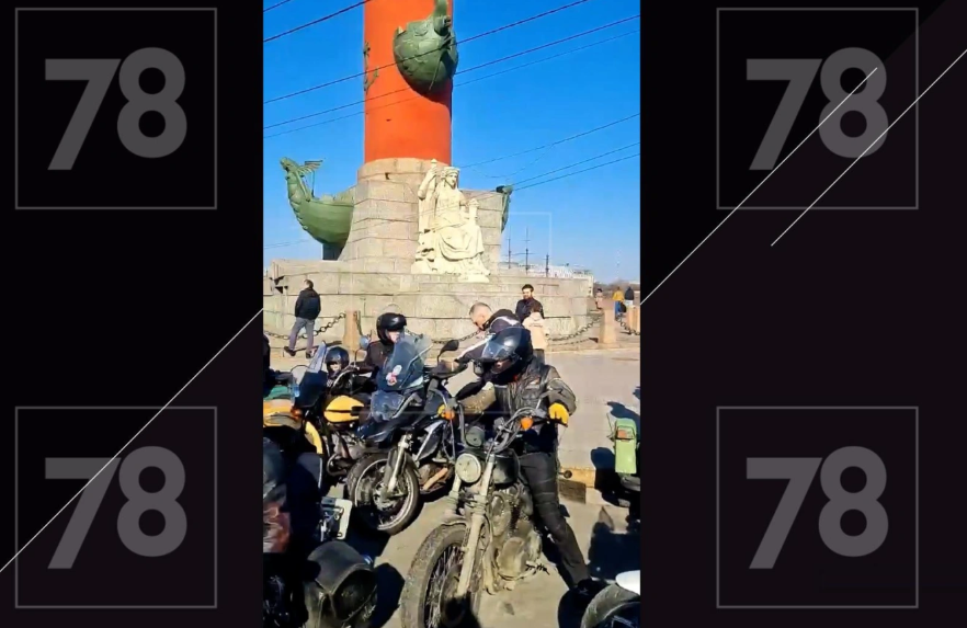 В составе колонны из более чем 100 мотоциклистов они проехали по Невскому проспекту в сторону площади Александра Невского