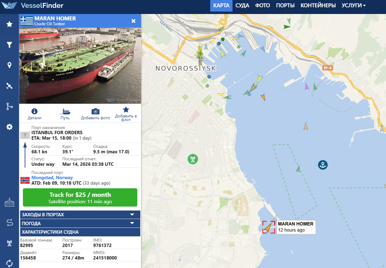 Судя по данным морских трекеров, последний судозаход танкера состоялся в порту Норвегии.