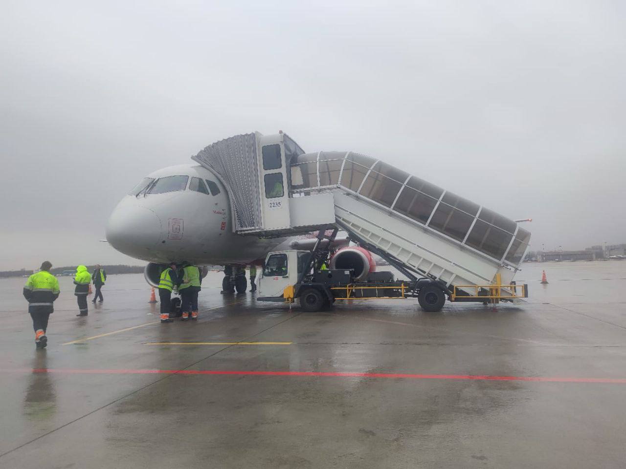 Аварийно приземлившийся в Пулково самолёт Sukhoi Superjet, следовавший рейсом из Петербурга в Мурманск.