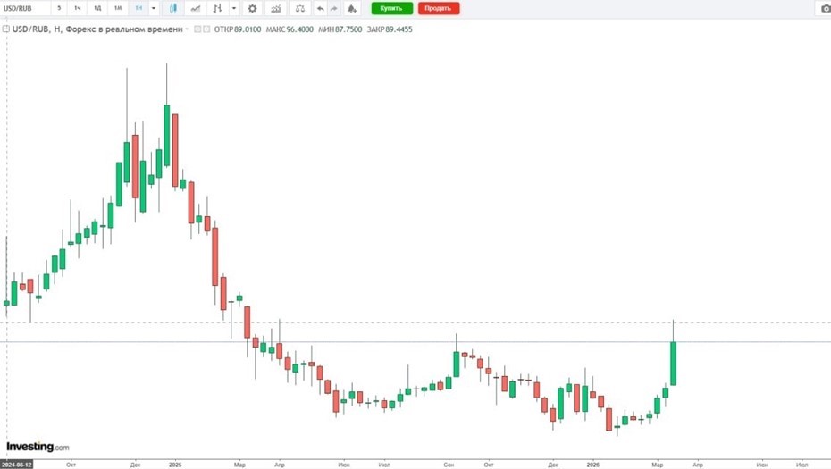 Курс евро тем временем вырос до 97,4 рубля (+1,46%). Ранее такой рост наблюдался в октябре 2025 года.