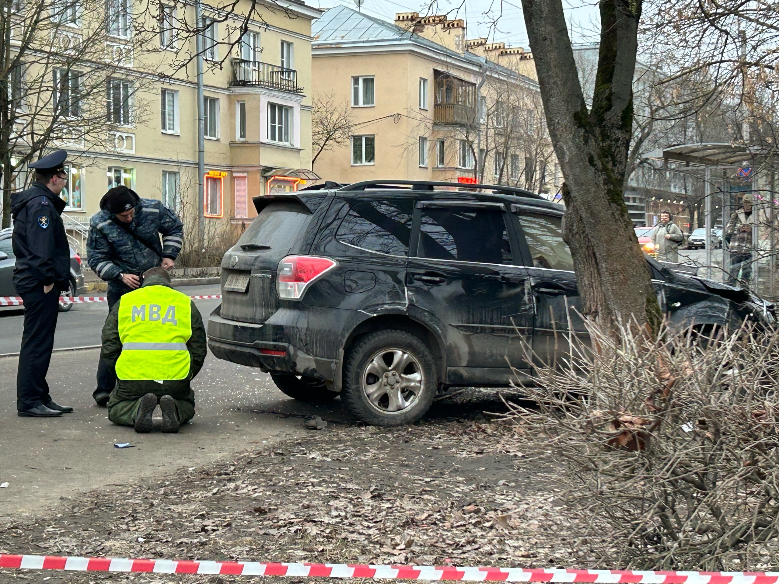На фото: ДТП в Пушкине: кроссовер сбил мать с детьми на остановке