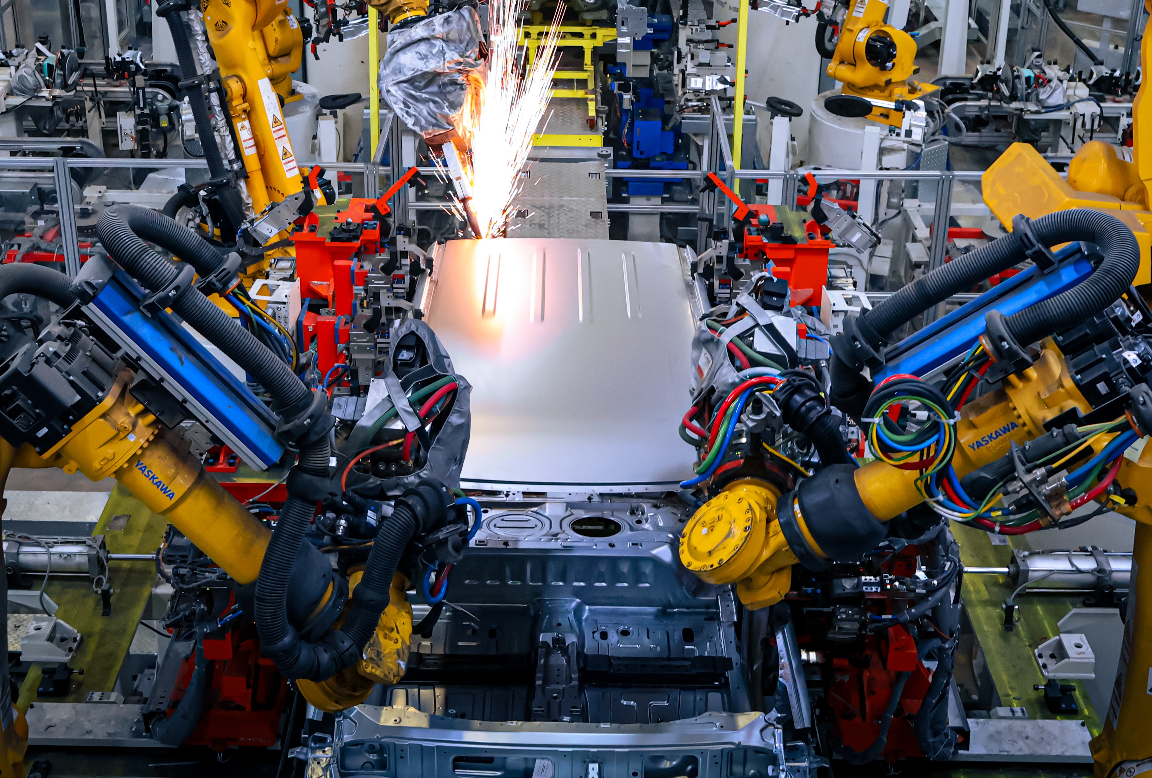 Отмечается, что монтаж основного оборудования для цеха занял всего около двух месяцев. За это время в сварочном цехе было установлено 120 промышленных роботов, в течение месяца проведена настройка и доводка параметров.