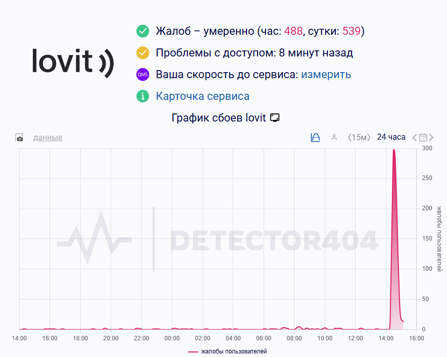 Пользователи в Петербурге, Москве и Московской области сообщили о масштабном сбое в работе интернет-провайдера Lovit, следует из данных сервиса Downdetector.