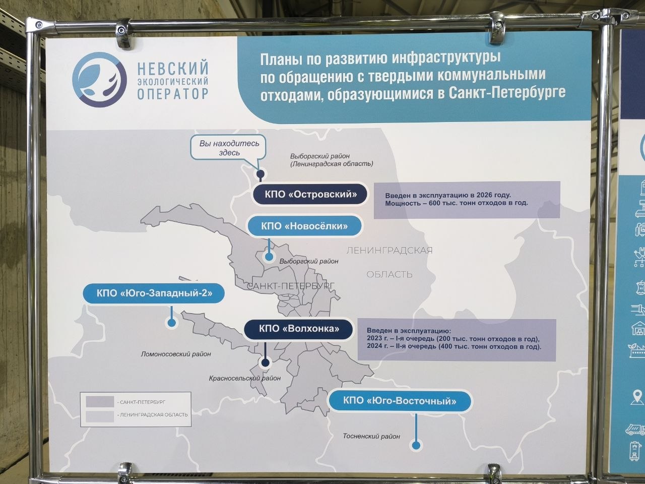 В планах НЭО — строительство ещё двух комплексов по переработке отходов в Ленинградской области. На всех областных объектах предусмотрены как мощности по сортировке, так и полигоны для захоронения отходов.