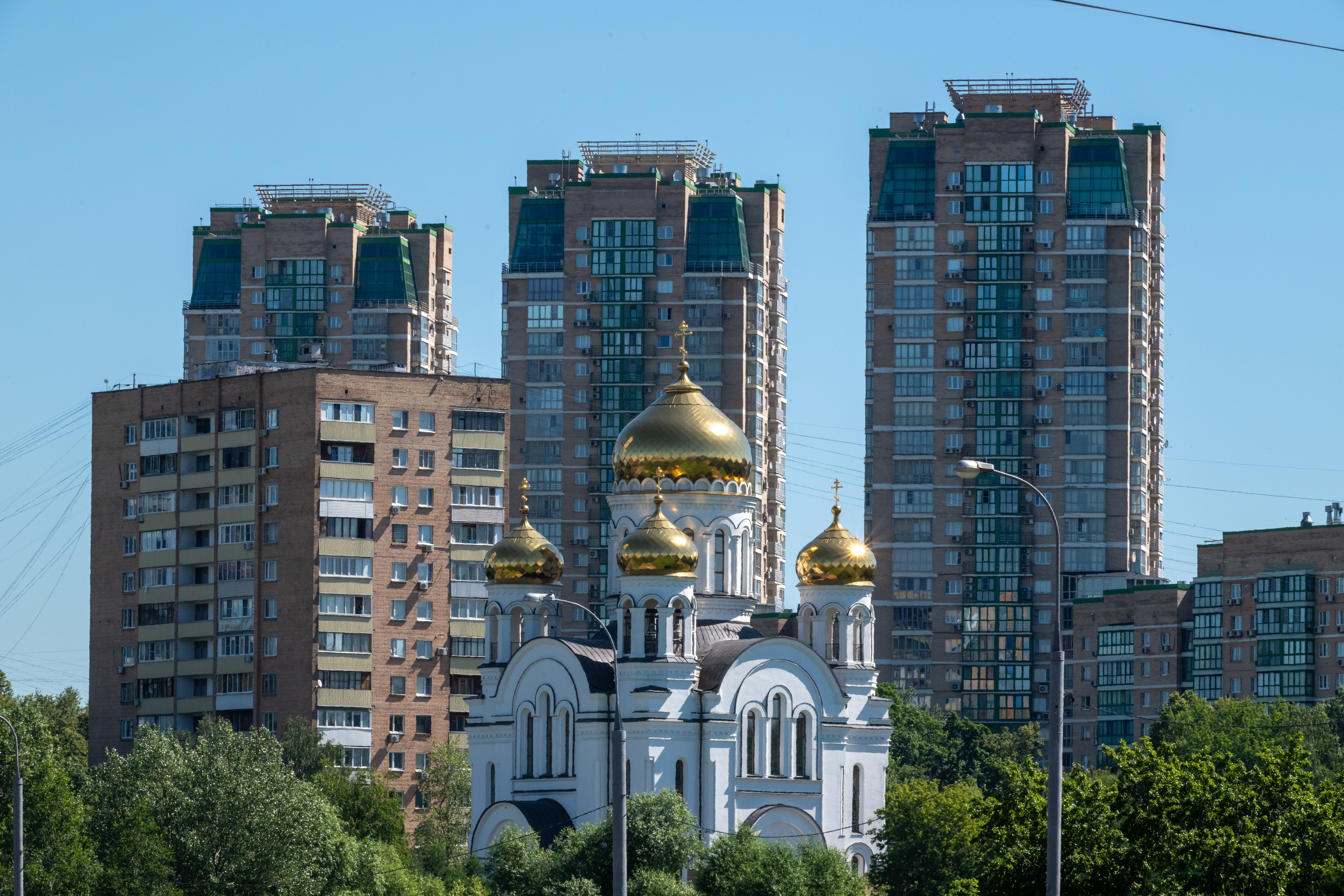 Контраст между церковной архитектурой и обликом современных жилых комплексов может быть весьма значителен
