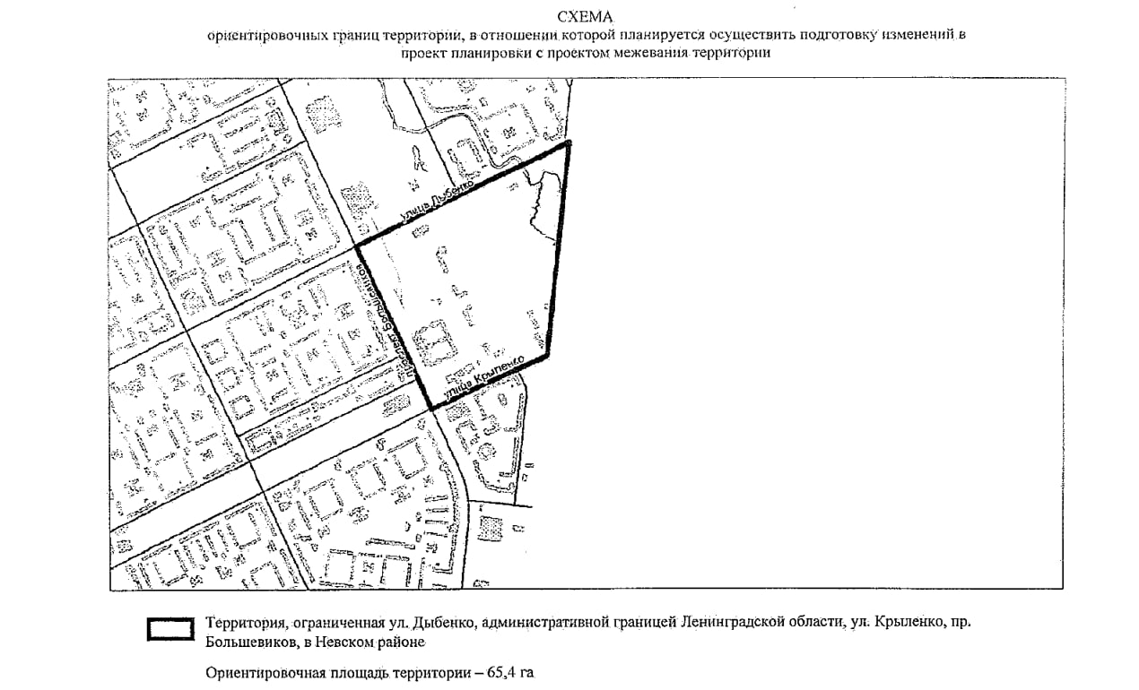 Речь идёт о территории, ограниченной улицами Дыбенко и Крыленко, административной границей Ленинградской области, проспектом Большевиков.