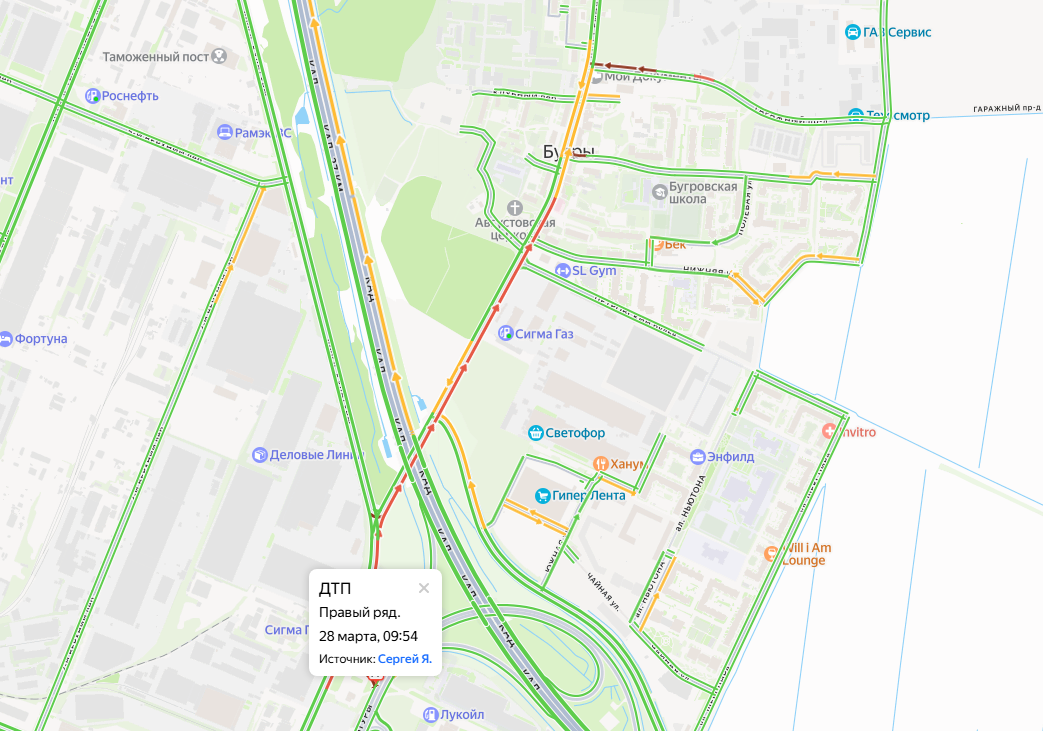 Утром в субботу, 28 марта, на внешнем кольце КАД в районе Бугров Ленобласти произошла смертельная авария, сообщили очевидцы в Сети.