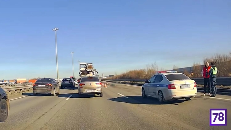 По словам водителей, на месте ДТП работают правоохранители. Ограничено движение по правой полосе.