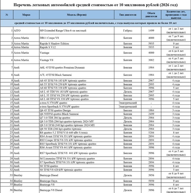Согласно документу, повышенные коэффициенты для уплаты транспортного налога применяются теперь для 305 моделей средней стоимостью от 10 до 15 млн рублей, а также для 268 моделей, средняя стоимость которых выше 15 млн рублей.