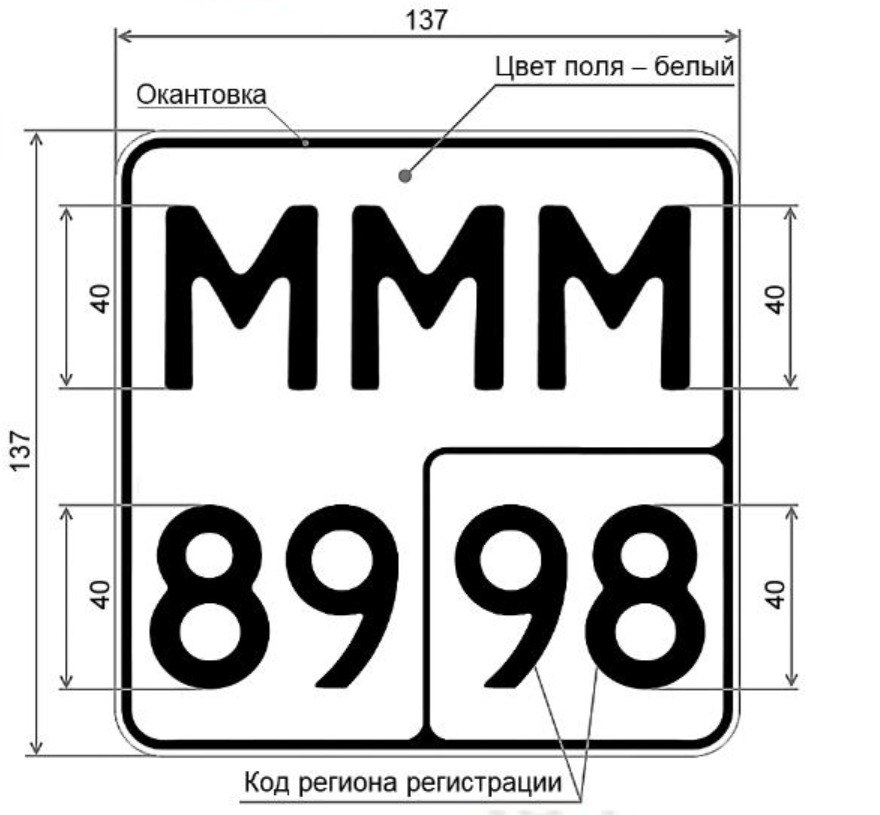 Номер для самокатов должен быть металлическим, двухстрочным, с тремя буквами сверху, двумя цифрами и кодом региона внизу, размером 137 на 137 мм. Один номер должен быть установлен на задней части устройства, второй — спереди, сообщает "Ъ" со ссылкой на документы Росстандарта.