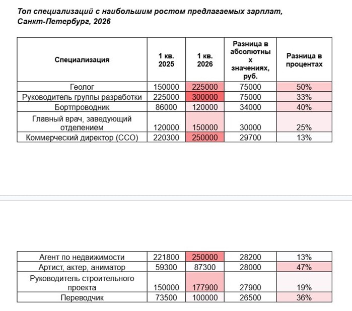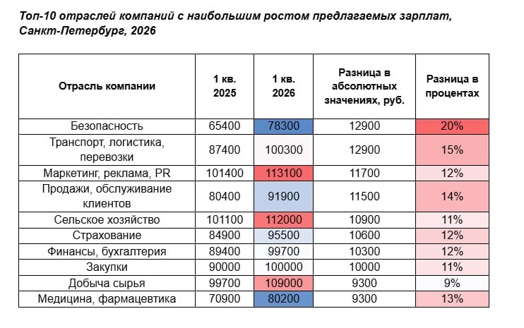 "В первом квартале 2026 года медиана предлагаемой в вакансиях зарплаты в Санкт-Петербурге составила 92 400 рублей. По сравнению с показателями аналогичного периода прошлого года она увеличилась на 11% или на 9 500 рублей", — отметили эксперты.