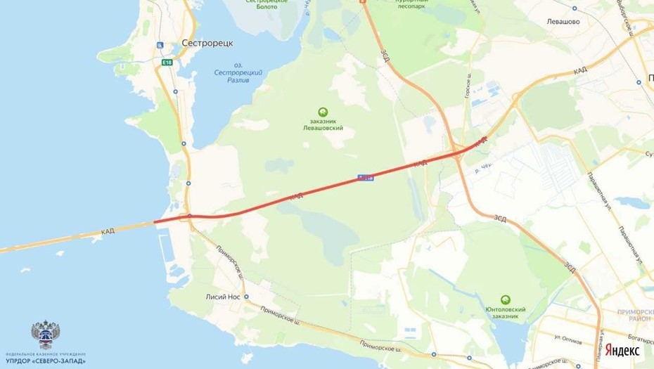 В Петербурге на пять месяцев полностью перекроют внешнее кольцо КАД на участке между развязкой с ЗСД и развязкой с Приморским шоссе, сообщает ФКУ Упрдор "Северо-Запад".