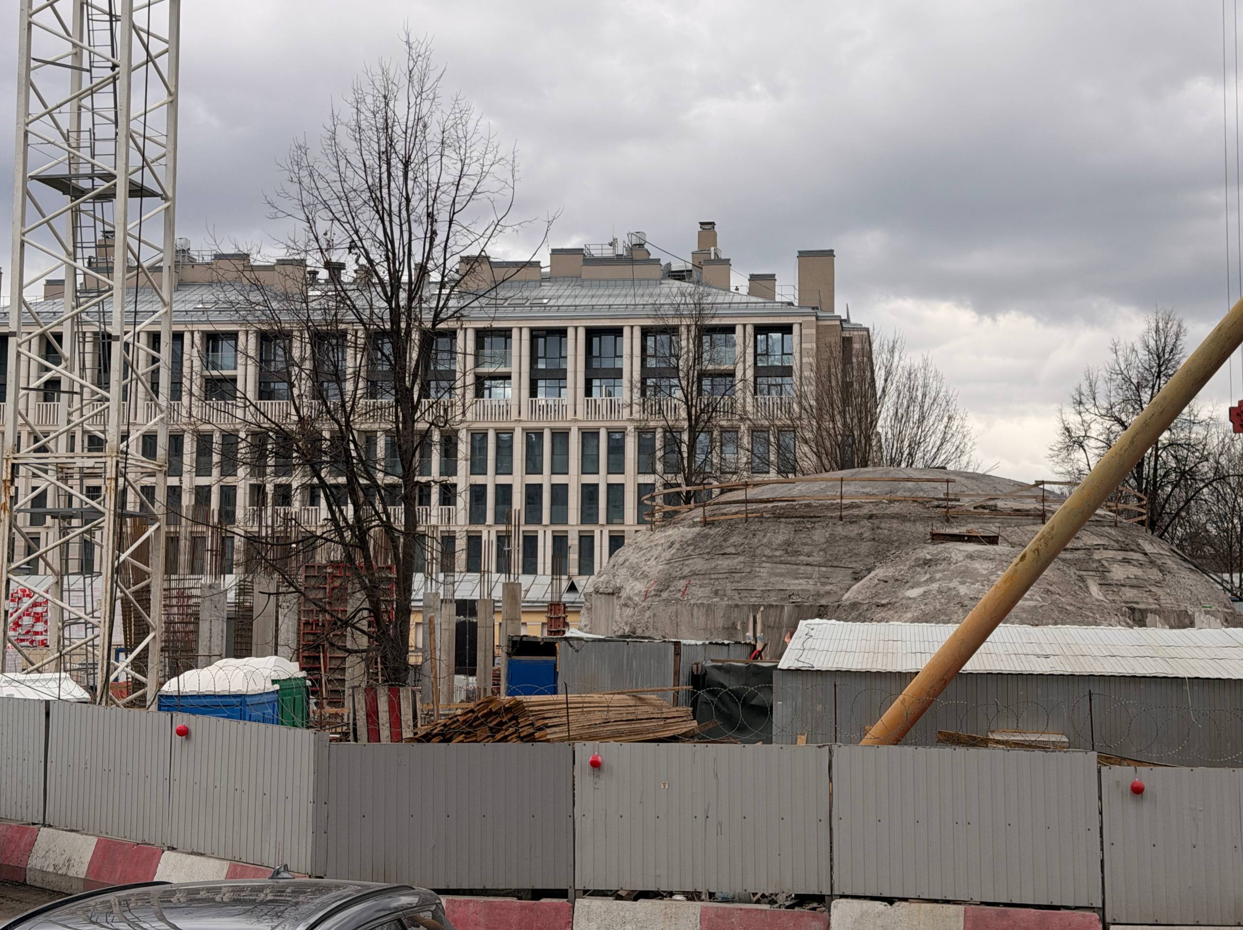 "На данный момент завершён демонтаж большей части конструкций прежнего вестибюля, сохранился только "бронекупол" кассового зала; в наклонном ходу демонтированы эскалаторы и внутренние конструкции, ведутся работы по гидроизоляции; выполнены работы по устройству шпунтового ограждения по периметру, а также свайного основания из буронабивных свай для фундамента нового вестибюля", — сообщает "Подземник".