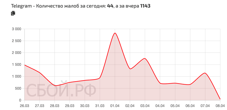 На сайте сбой.рф зарегистрировано более 40 жалоб, за сутки — также более 1,1 тыс.