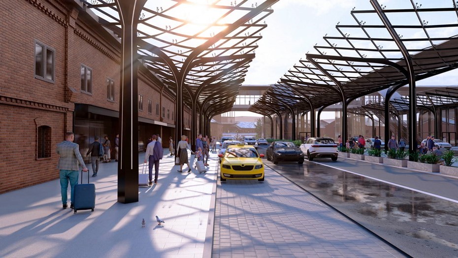 Внешний вид вокзала, который построят для новой пассажирской станции Волковская в Петербурге.