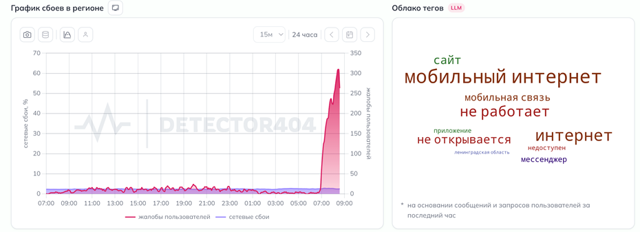 За последний час на платформу DownDetector поступило более 1 тыс. жалоб, за сутки — более 2,4 тыс.