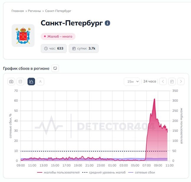 В настоящее время жители Петербурга продолжают испытывать проблемы с мобильным интернетом — за последний час поступило более 600 жалоб на сбои, за сутки их накопилось более 3,7 тыс, следует из данных сервиса Downdetector. При этом сайты из "белых списков" продолжают работать.