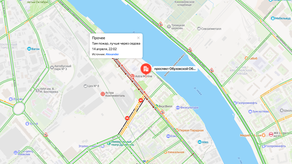 Из-за ЧП оказался затруднён проезд по проспекту Обуховской обороны. Водители стоят в пробках в обе стороны. Водители советуют автолюбителям объезжать место аварии.