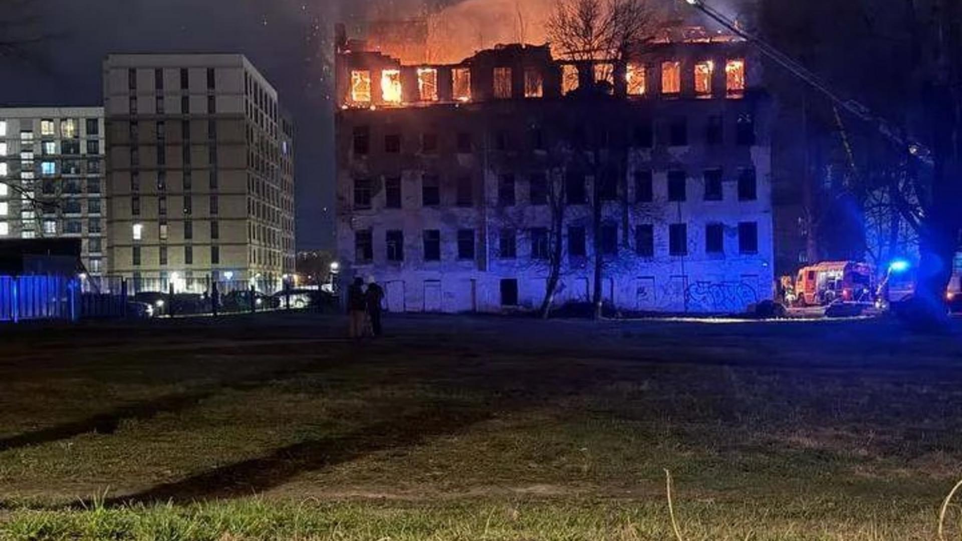 В Петербурге в ночь на 15 апреля пожарные тушили огонь в заброшенном здании на проспекте Обуховской обороны, рассказали в пресс-службе МЧС России по Петербургу.