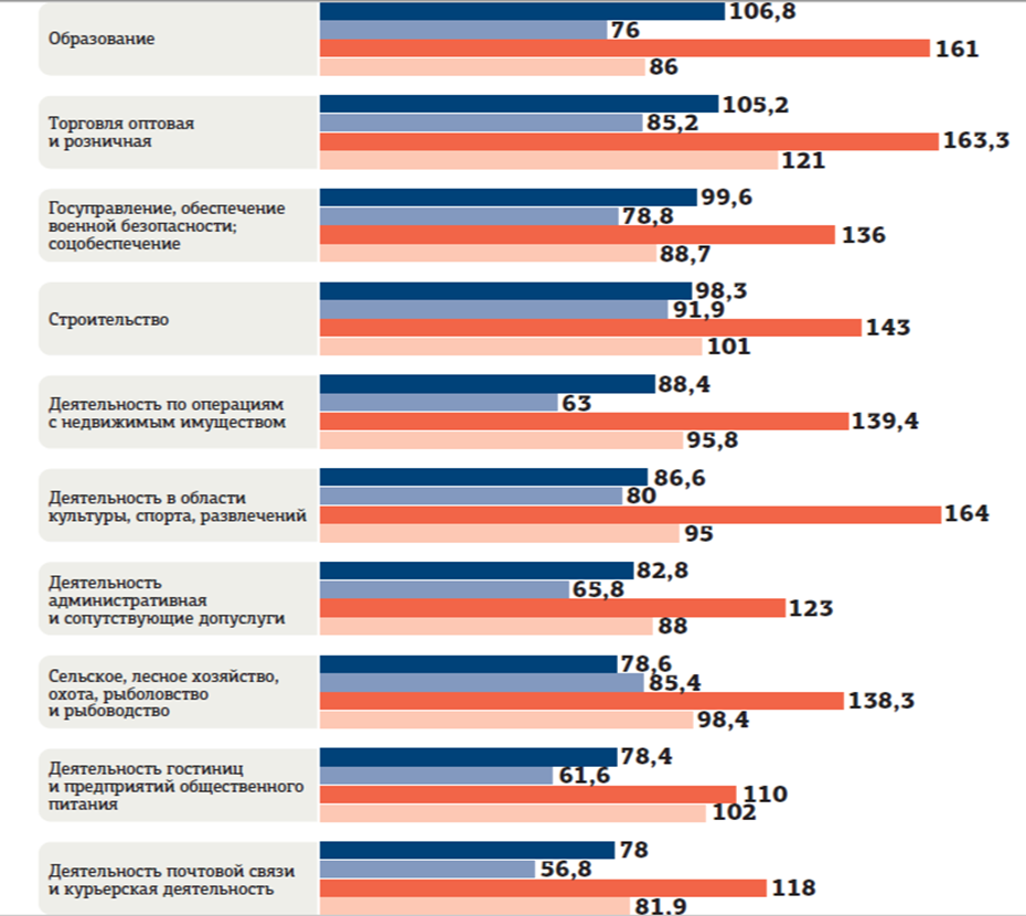 В сфере обрабатывающих производств в столице платят 158,5 тыс. рублей, это на 27,9 тыс. рублей больше, чем в Петербурге (130,6 тыс.). В Московской области средняя зарплата — 121 тыс. рублей, в Ленинградской — 114 тыс. Профессор кафедры экономики и управления предприятиями и производственными комплексами СПбГЭУ Елена Ткаченко подчёркивает, что вознаграждение за труд топ–менеджеров в промышленной индустрии в 3–5 раз выше. "Ситуация с Москвой и Московской областью зависит от отрасли и направления деятельности, но в среднем зарплата что у рабочих, что у менеджеров выше примерно на 30%. При острой нехватке квалифицированных сварщиков их зарплата может выйти на уровень топ–менеджмента. Сейчас на фоне охлаждения экономики темпы роста зарплат существенно снизились", — пояснила она.