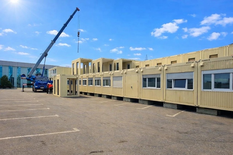Монтаж конструкций ведется с применением специализированной техники. Согласно плану работ, сборка всех элементов займет две недели. После этого объект планируется передать заказчику в состоянии, полностью готовом к заселению сотрудников.