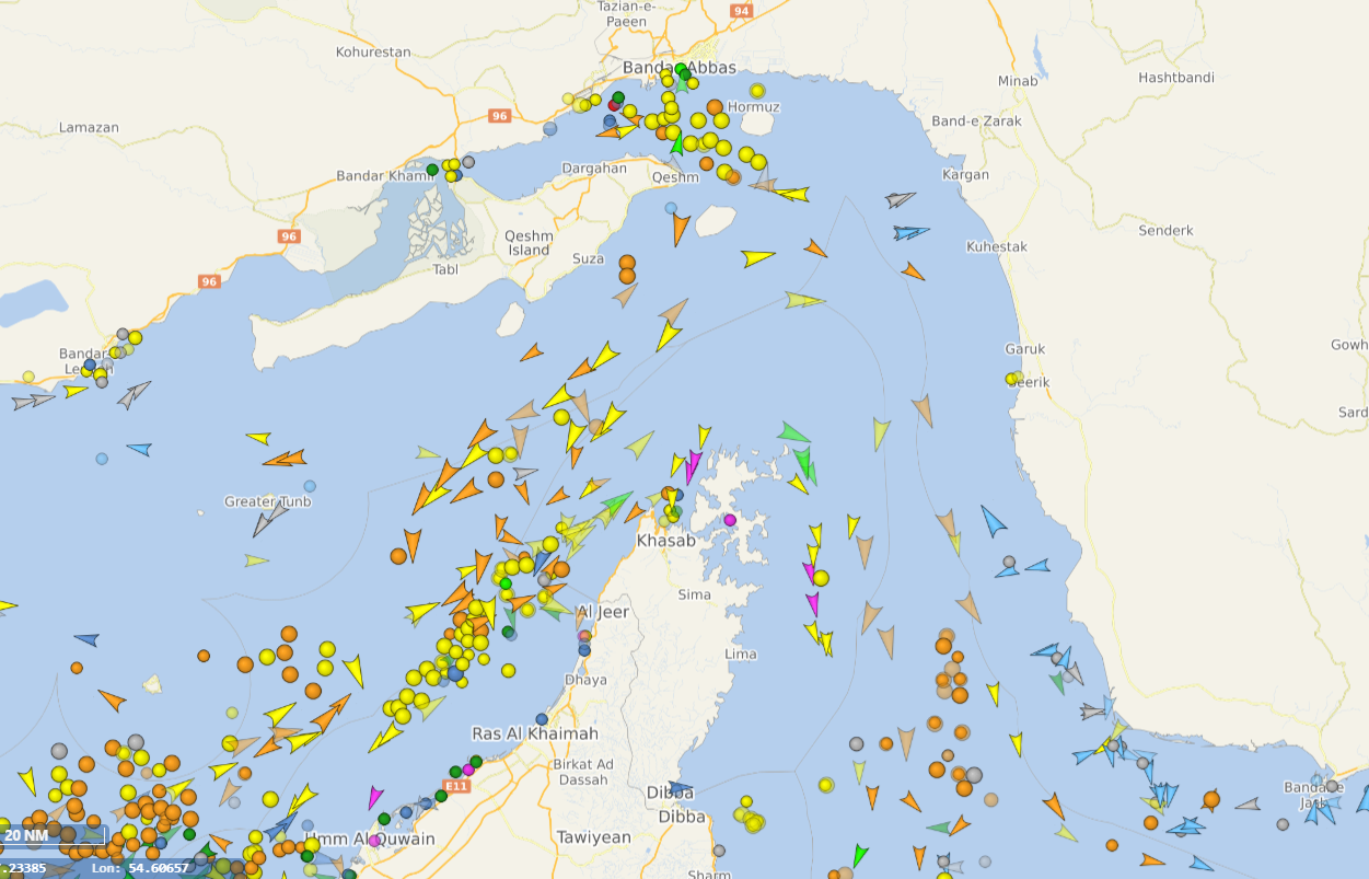 Днём в субботу через Ормузский пролив после открытия шли первые танкеры. Через оманские воды прошли три небольших грузовых судна под флагом Индии и одно парусное судно. Первоначально группа включала четыре танкера-газовоза и несколько танкеров для перевозки нефти и химических продуктов. Через иранские территориальные воды на севере прошёл танкер Black Maya под флагом Кюрасао, за ним TRIMMU 3 и танкер для перевозки сжиженного нефтяного газа под флагом Гонконга.