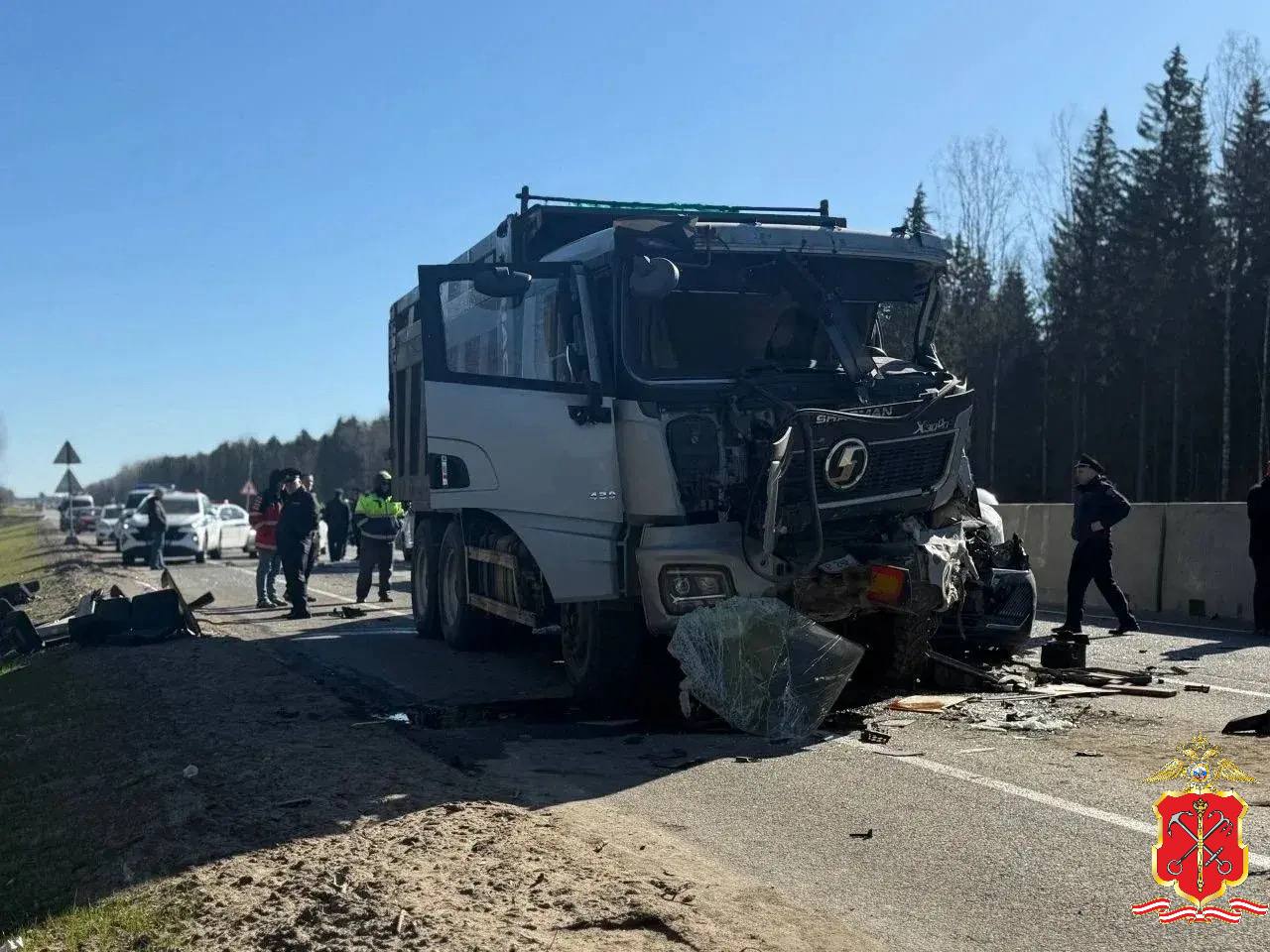 По данным ведомства, ДТП произошло в понедельник, 20 апреля, около 7:20. На дороге А-120 "Санкт-Петербургское южное полукольцо" грузовик Shacman, который двигался от Отрадного в сторону Гатчины, столкнулся с четырьмя машинами.
