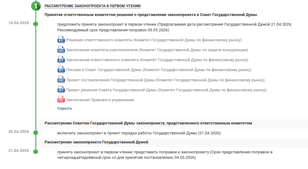 Соответствующий документ правительство внесло на рассмотрение в начале апреля.