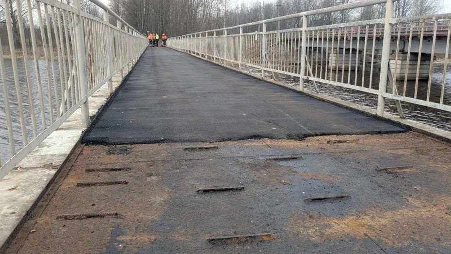 На Капсюльном мосту этой весной сначала полностью удалили старый асфальт, а затем уложили два слоя нового покрытия. Дело в том, что асфальт на мосту за годы службы покрылся сетью трещин и до ремонта не обеспечивал безопасный проход.
