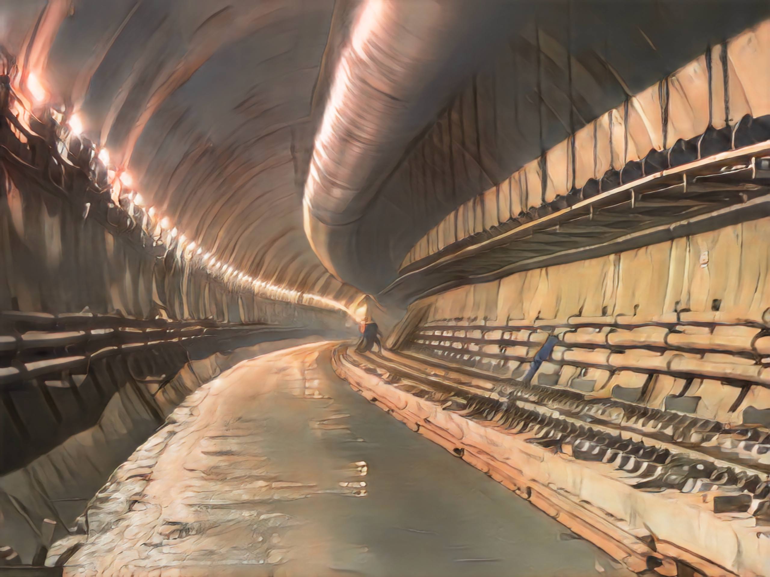 После завершения проходки в тоннеле сооружается жёсткое основание, на котором в дальнейшем монтируется рельсо-шпальная решётка и укладываются рельсы.