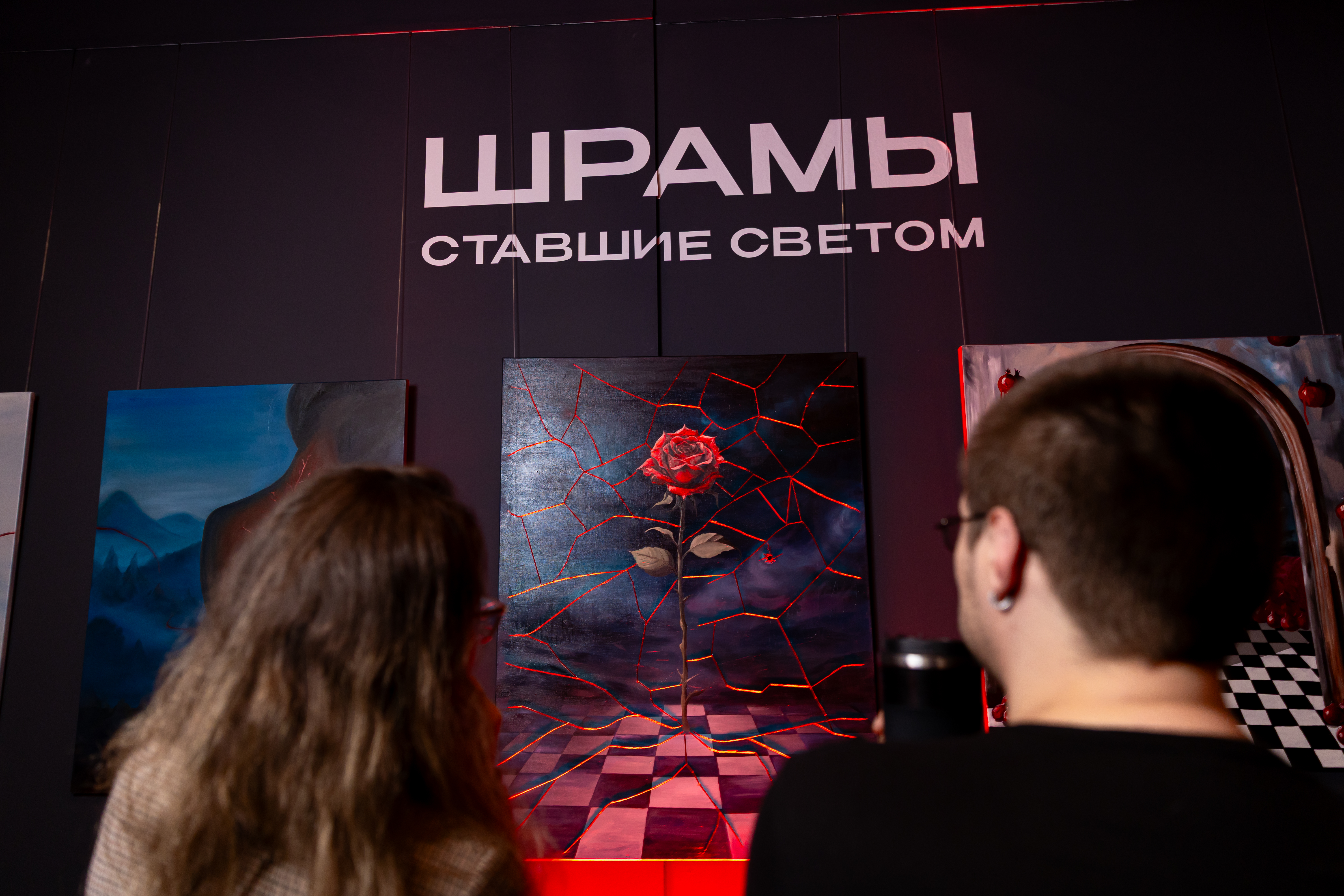 В фиджитал–арт–пространстве Futurione Emotions в ТРК "ПИК" состоялось торжественное открытие групповой выставки петербургских художников "Шрамы, ставшие светом". В рамках вернисажа были представлены работы пяти участников: Насти Гранат, Юлианы Поповой, Алисы Третьяковой, Татьяны Халезовой и Константина Автографа. Через живопись, фотографию и инсталляцию художники обращаются к теме травм не как к застывшим следам прошлого, а как к точке внутреннего изменения.