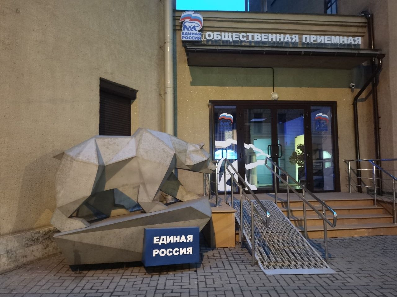 В центре Петербурга с территории офиса "Единой России" убрали скульптуру белого медведя, поделился общественник Ярослав Костров.