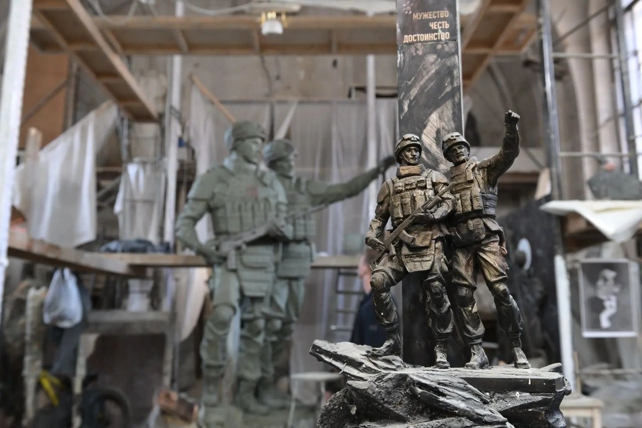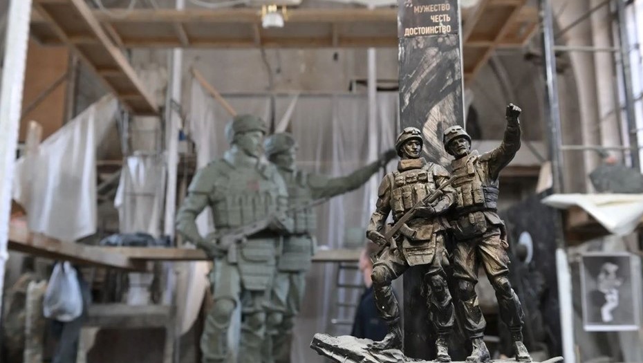 "Идея композиции — показать русского воина, передать силу духа русского солдата, это собирательные образы парней, которые сейчас исполняют свой долг, свою работу на передовой, именно их мы показываем со всех сторон, во всей красоте", — подчеркнул он.