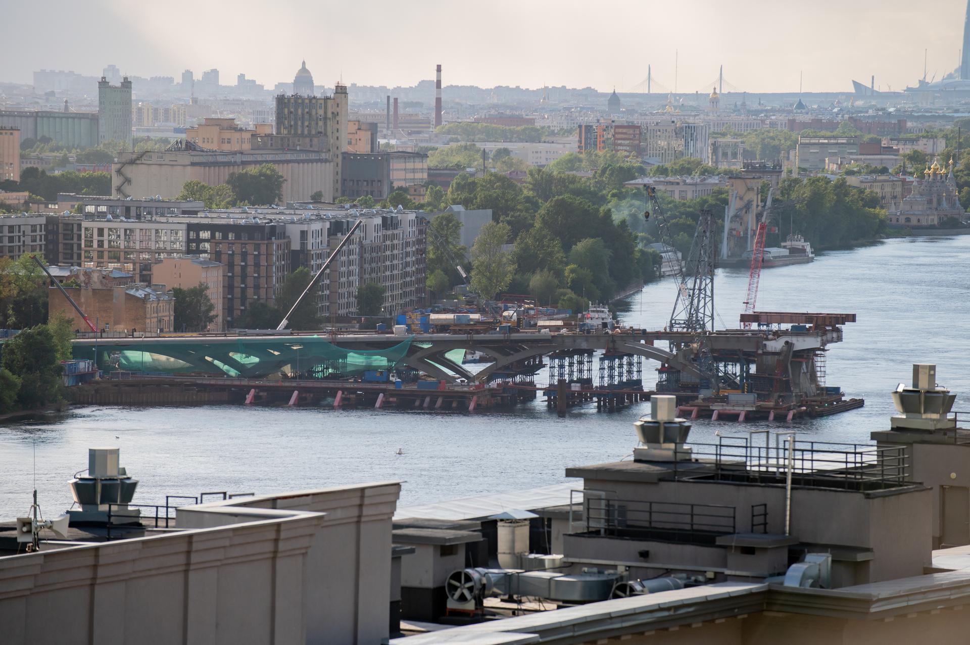 "У нас сегодня в работе пять разводных мостов. Один — Большой Смоленский. Вы знаете. Уже его практически смонтировали полностью, уже два крыла по 600 тонн каждое. Первая навигация уже прошла с разводным мостом, это первый мост по вашему поручению за 40 лет, который строится в Санкт-Петербурге", — подчеркнул Беглов.