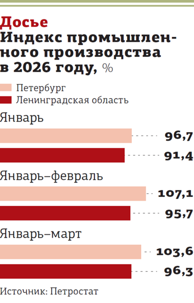 По итогам I квартала индекс промышленного производства в Петербурге прибавил 3,6%, а по итогам января–февраля рост доходил до 7,1%. Обрабатывающие отрасли при этом росли быстрее среднего по стране. Драйверами оставались радиоэлектроника, приборостроение и машиностроение, а общий объём отгрузки промышленной продукции превысил 4 трлн рублей. Однако эксперты обращают внимание на то, что на уровне отдельных предприятий и сегментов всё заметнее признаки стагнации. Ключевой вопрос не в том, есть ли рост в принципе, а в том, за счёт чего он формируется.