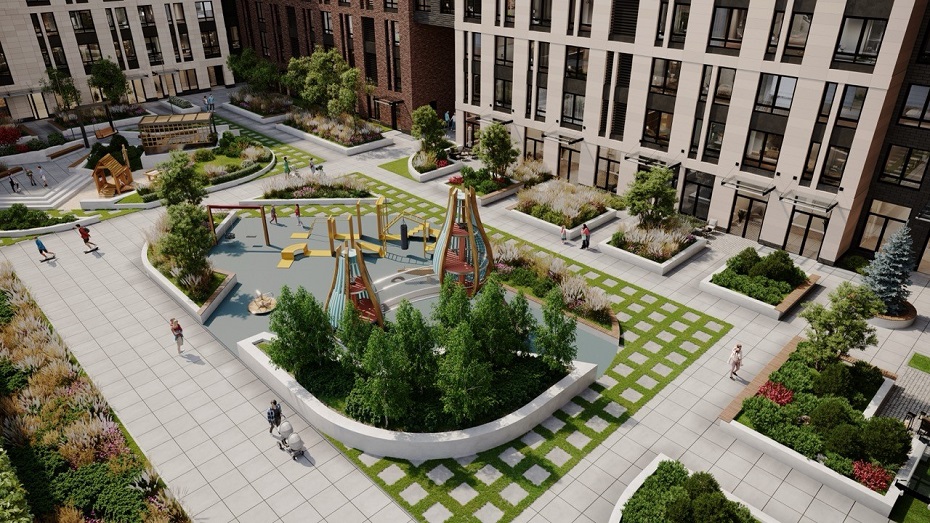 По словам Романа, нельзя сказать, что весь рынок уже работает по этим принципам — у каждого девелопера свое представления прекрасного. "Но в проектах "Вертикаль" мы сознательно работаем в нише с требовательной аудиторией и выстраиваем продукт, исходя из ее высоких ожиданий и от квартир, и от дома в целом. Так, в ЖК "Знатный" мы используем такой ландшафтный приём как геопластика — создание искусственного изменения рельефа, что позволяет разнообразить и структурировать пространство. Использование высоких деревьев, разных по масштабу и фактуре кустарников лиственных и хвойных пород, цветников из трав и злаков формирует зелёный каркас двора, сохраняющего декоративные качества в любое время года".