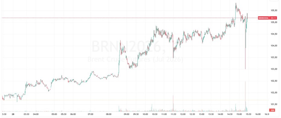 Июльский контракт откатывался к $103 за баррель. Спустя время эти фьючерсы незначительно вернули в цене.