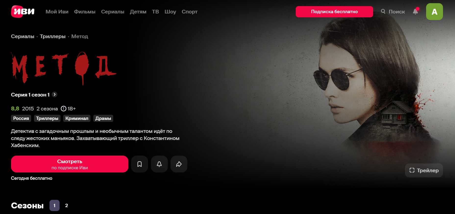 Третий сезон сериала "Метод" на момент выхода материала ещё значится на сайте "Кинопоиска".