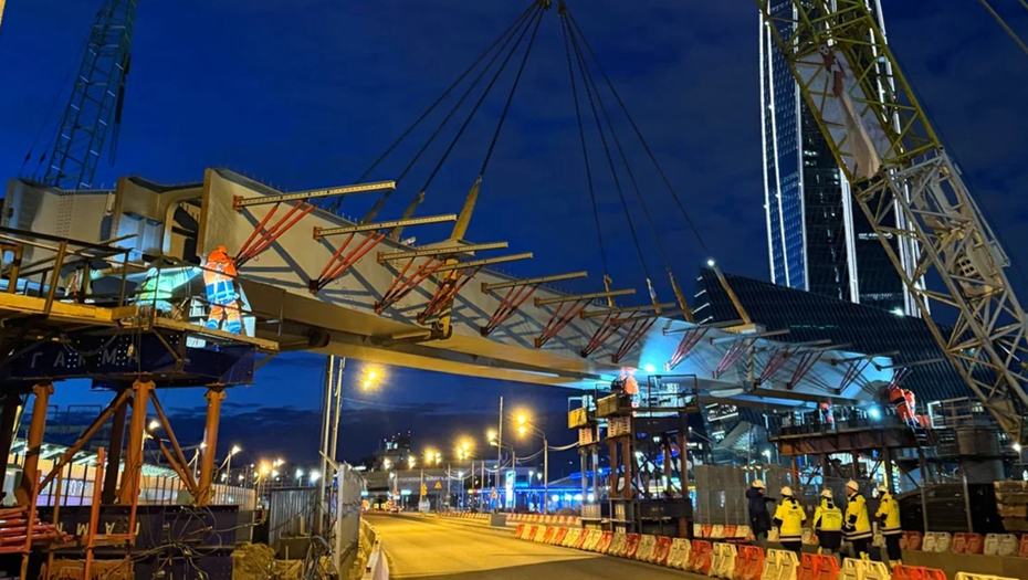 Монтажные работы проводятся ночью, поэтому влияние на движение поездов и автомобилей минимально. Очередное технологическое "окно" запланировано на конец июня 2026 года. Монтаж оставшихся конструкций планируют завершить к середине июля, все элементы развязки с будут готовы весной 2027 года.