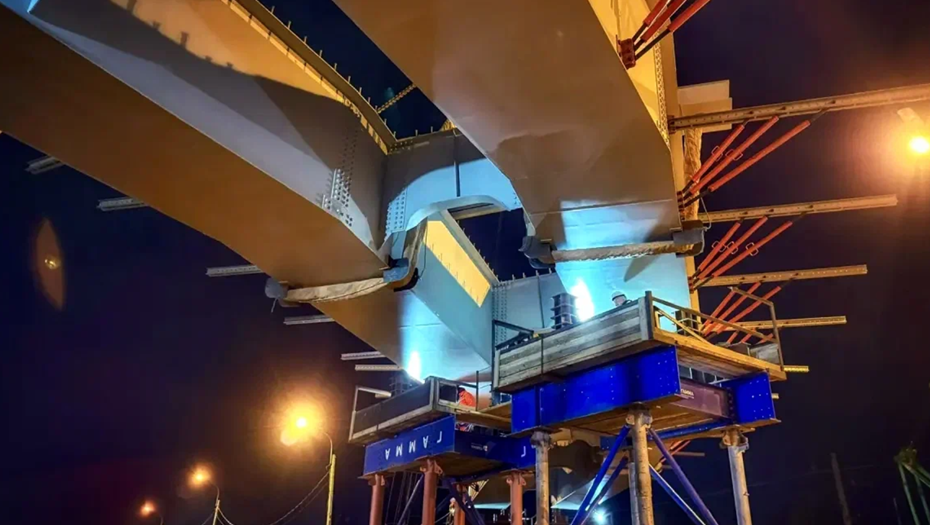 "Для строительства путепровода в общей сложности изготовлены и монтируются 233 металлические балки длиной от 8 до 12 метров и весом от 9 до 40 тонн. Чтобы смонтировать пролёты над Приморским шоссе, специалисты сначала выполняют укрупнённую сборку балок на стапеле", — сообщили в компании.